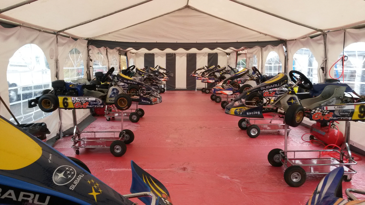 Julien arrive sur le paddock de Formule kart le complexe de Villeperdue qui accueille ce weekend le championnat de France Subaru, ou il trust déjà les meilleurs emplacements.